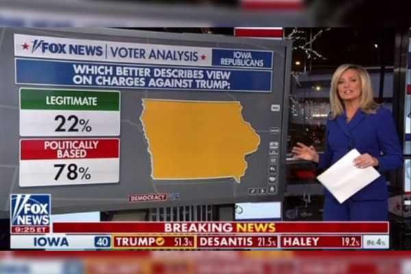 78 percent of the Monday caucus goers believe the Democrat lawfare charges against President Trump are politically motivated.