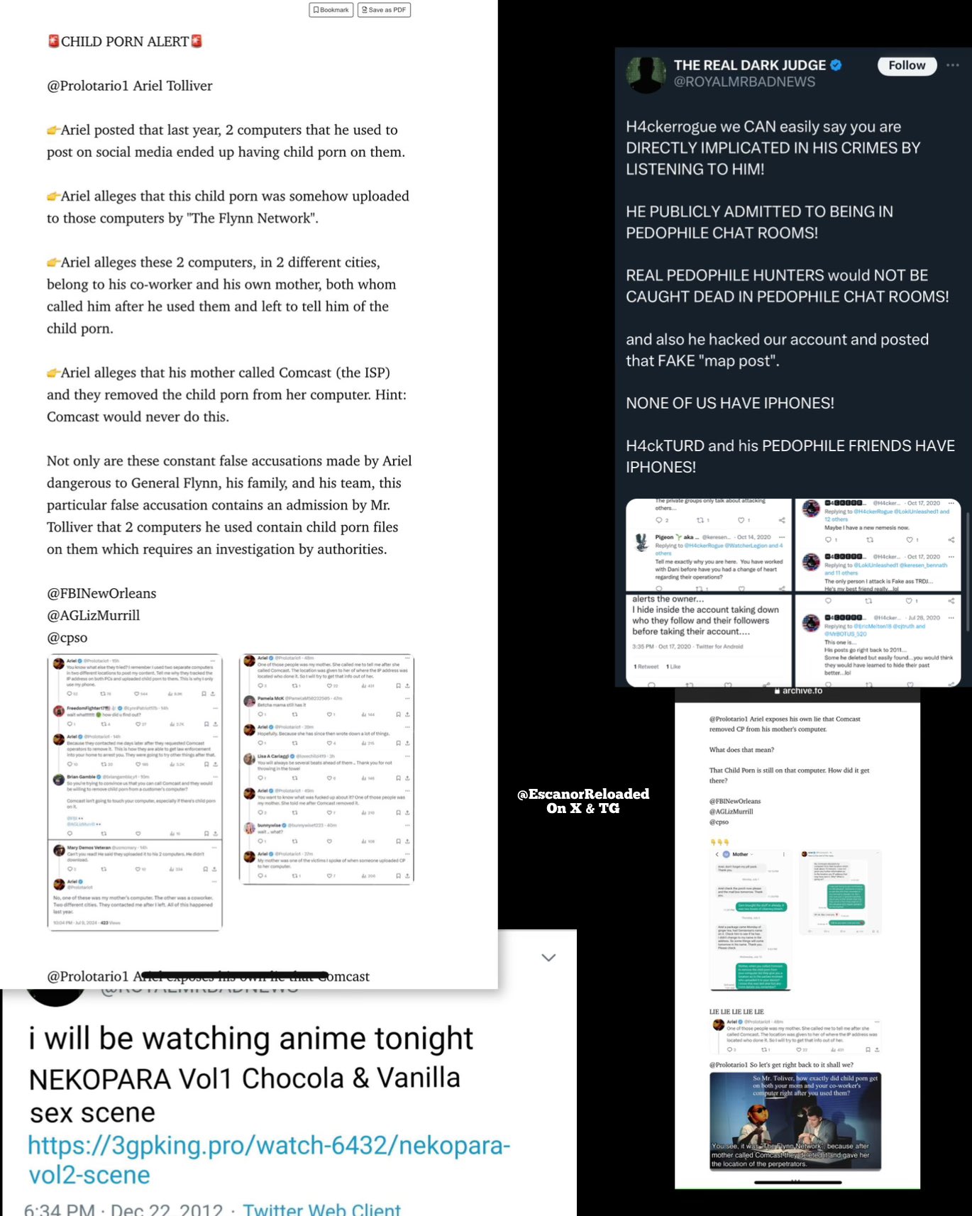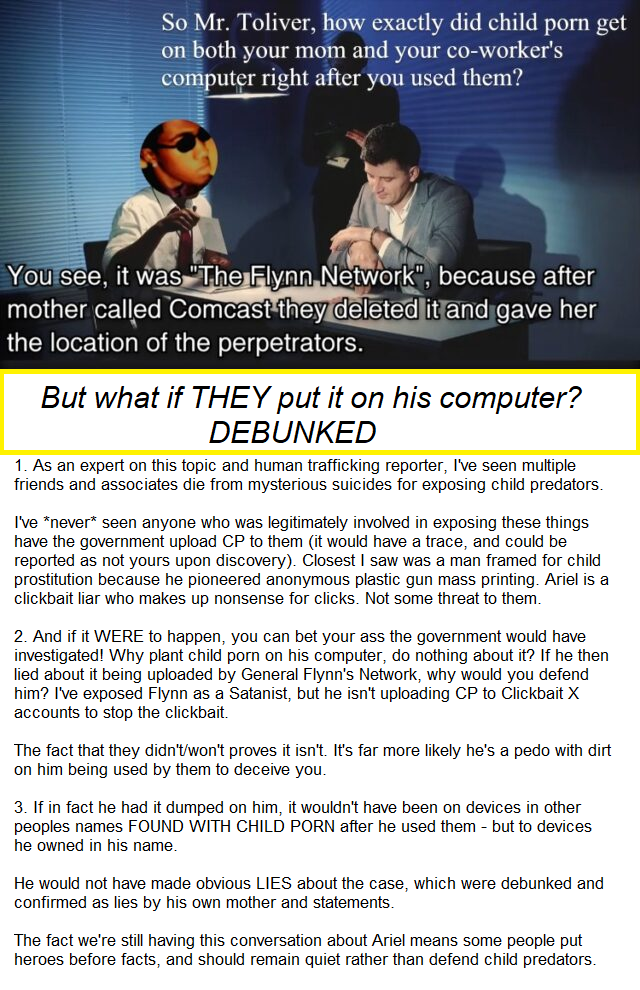 A thread summarizing Ariel’s projection attacks against me in retaliation for pointing out … his own words admitting to child porn.