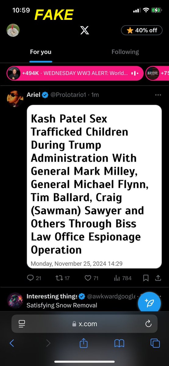 The Website with the article Ariel is sharing is a troll site, with references to “Ghost” and the “Capitalist Army” A group of trolls who seriously think I am QAnon and have been trolling me for years.