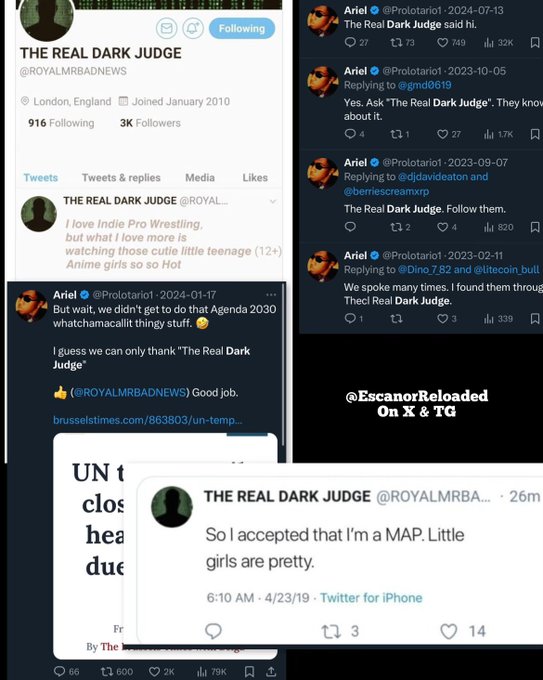 Ariel was not alone in this interest in children, his associate “TheRealDarkJudge” has also posted pedophilic admissions. As if they cannot help themselves or are trying to normalize it.