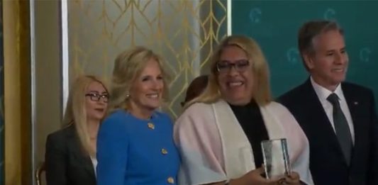 Reported by: The Gateway Pundit A biological male received an award during the International Women Day of Courage Ceremony at the White House on Wednesday. Jill Biden and Secretary of State Antony Blinken proudly stood next to the transgender (bio male) award recipient. Joe Biden was MIA. The International Woman of Courage Awards ceremony recognizes … Continue reading Biological Male Receives Award During the International Women of Courage Ceremony at White House with Dr. Jill (VIDEO)
