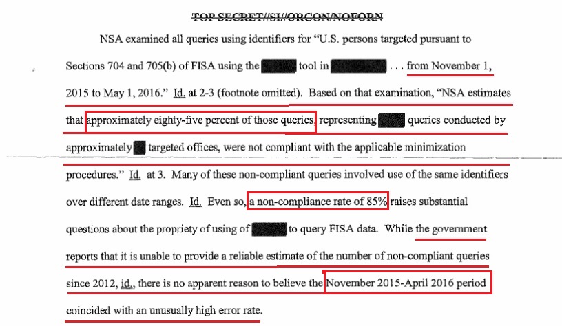 ♦Summary: The FISA court identified and quantified tens-of-thousands of search queries of the NSA/FBI database using the FISA-702(16)(17) system. The database was repeatedly used by persons with contractor access who unlawfully searched and extracted the raw results without redacting the information and shared it with an unknown number of entities.