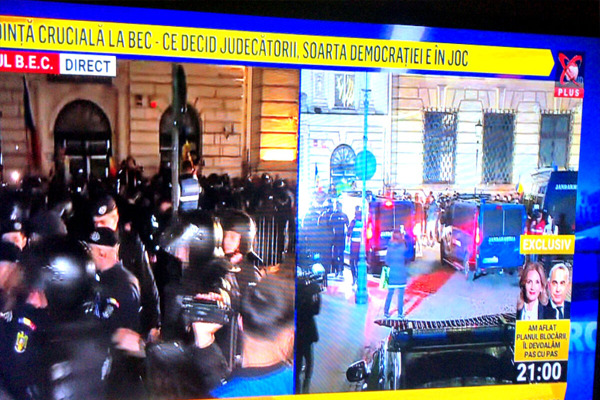 Protesters have stormed fences the Romania’s Bureau of Electoral Control (BEC), demanding answers, as gendarmes move in to manage the turmoil.