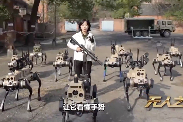 X account “Sinical” posted the viral footage, viewed 2 million times in just a few short days, that shows several new developments in China’s race to weaponize robot dogs: