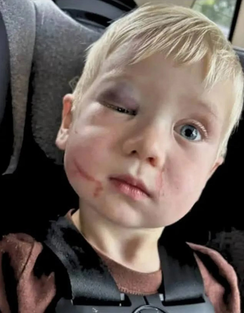 A daycare worker in Georgia was arrested for child abuse, authorities said, as the father of a toddler under her care shared heartbreaking pictures of the boy with a black eye and swollen face.