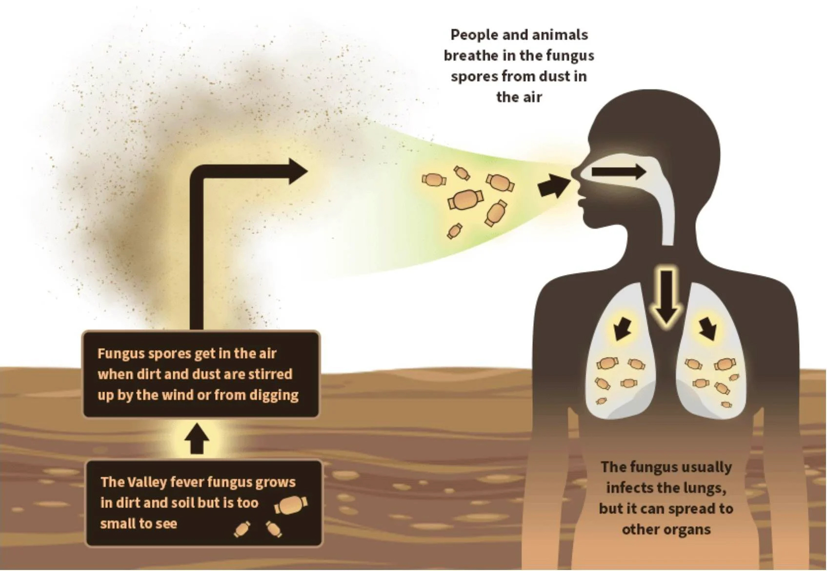 “Valley fever likes undisturbed soil — so as people continue to populate more arid, dry and less developed areas, there will likely be more interaction with it,” he said.