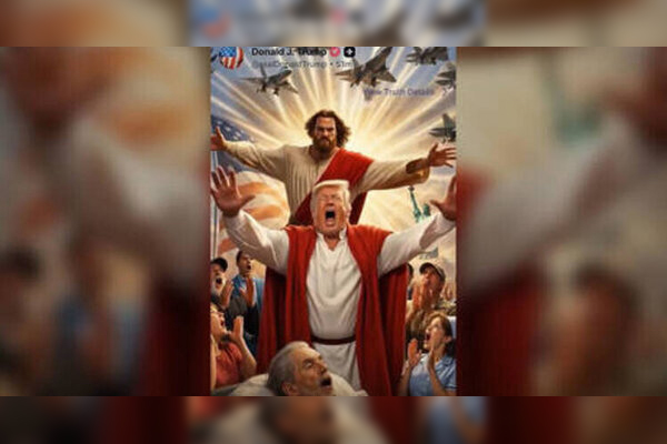 Trump posted the image on Truth Social on Sunday but deleted it the following day after a wave of criticism, saying he had not recognized its religious implications. It originally appeared in February, when author Nick Adams shared it with the caption: “America has been sick for a long time. President Trump is healing this nation.” Trump’s version was slightly altered.