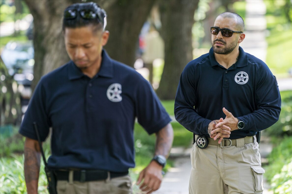 U.S. Marshals patrol outside the home of Supreme Court Justice Brett Kavanaugh, in Chevy Chase, Md., on June 8, 2022. (Jacquelyn Martin/AP Photo)