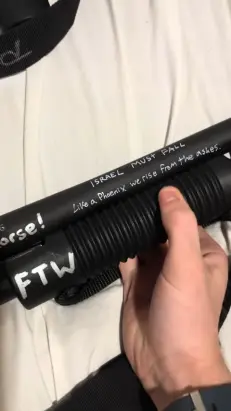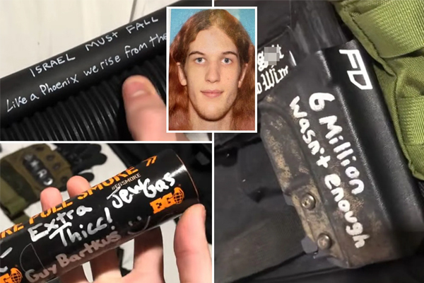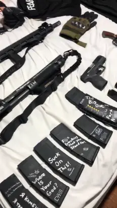 Another message scrawled on one of his many magazines read “Destroy HIAS,” the Jewish refugee aid group, while one of his guns read “Israel must fall, release the files,” a possible reference to Jeffrey Epstein.