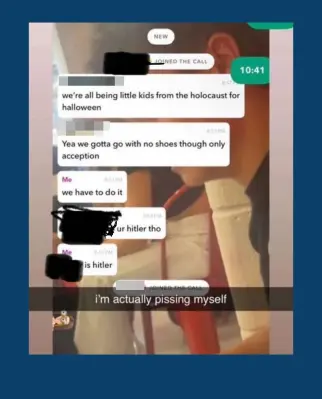 “we’re all being little kids form the holocaust for halloween,” one wrote, while another answered, “we have to do it” and “ur hitler tho.”