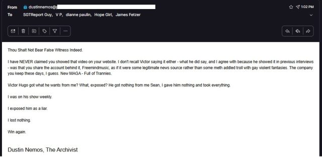 Dustin Nemos Victor Hugo Expose Alex Jones Stew Peters SGT Report Mike Adams Jim Fetzer John Coleman