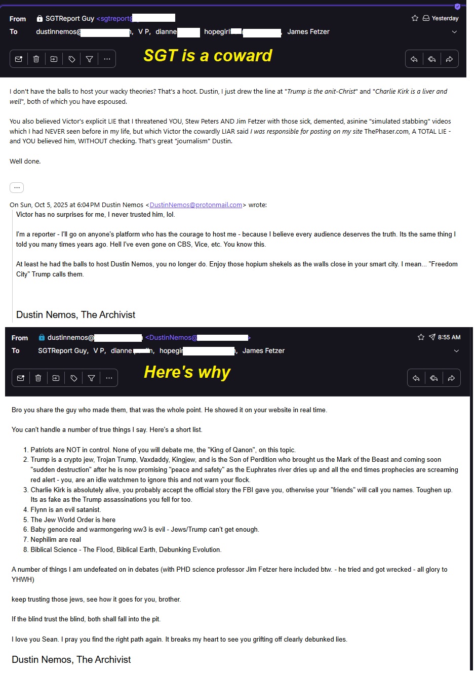 Dustin Nemos Victor Hugo Expose Alex Jones Stew Peters SGT Report Mike Adams Jim Fetzer John Coleman