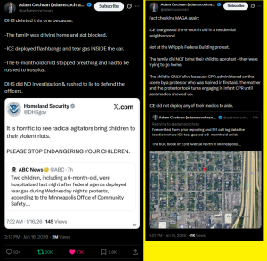 Nearly killed a child, teargassing a 6mo into unconsciousness. Then lied about it