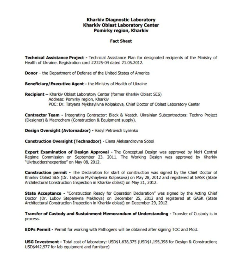 There are at least ten documents implicating the U.S. Department of Defense is funding these bio-labs in Ukraine.
