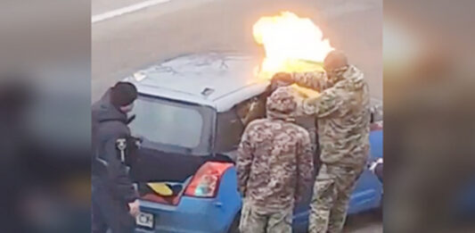 Ukrainian recruit hunters fill car with flammable gas (VIDEO)