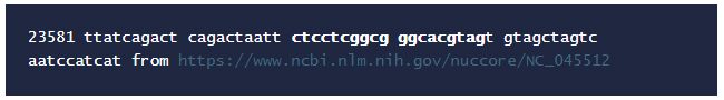 Which has the 19 nucleotide sequence CTCCTCGGCGGGCACGTAG from 23601-23619 as described in table 3.