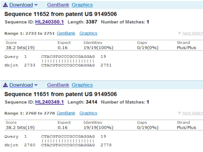 Likewise you can search for the sequence in US9149506B2 by going to https://seqdata.uspto.gov/?pageRequest=viewSequence&DocID=US09149506B2&seqID=11652, whereupon you will find the same thing again